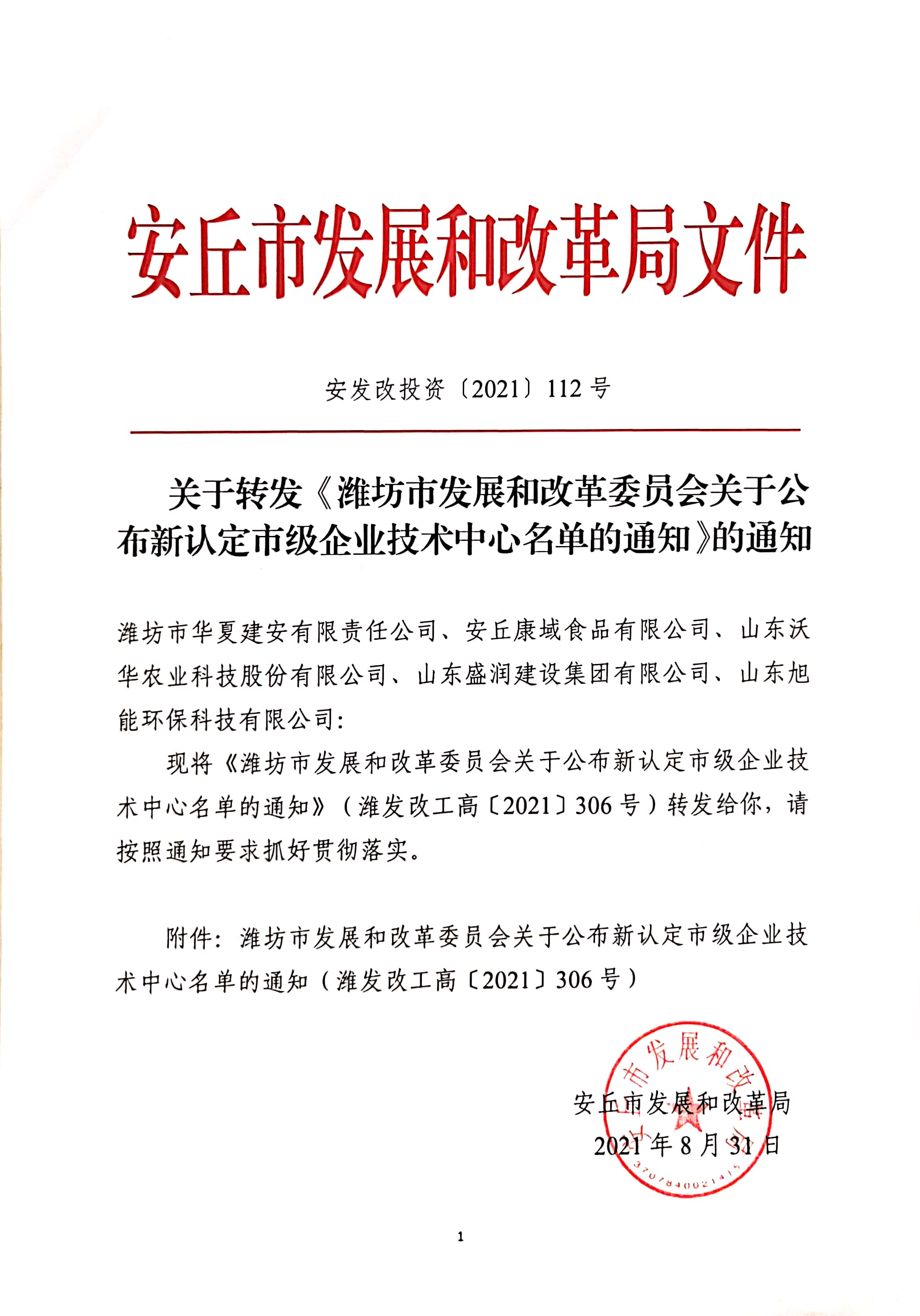 官宣!沃华企业技术中心荣获市级企业技术中心称号!